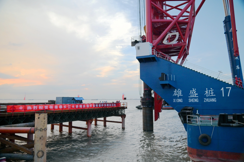 近日,张靖皋长江大桥首根钢护筒顺利打设,拉开了世界最大跨度桥梁主体结构水上施工的序幕。