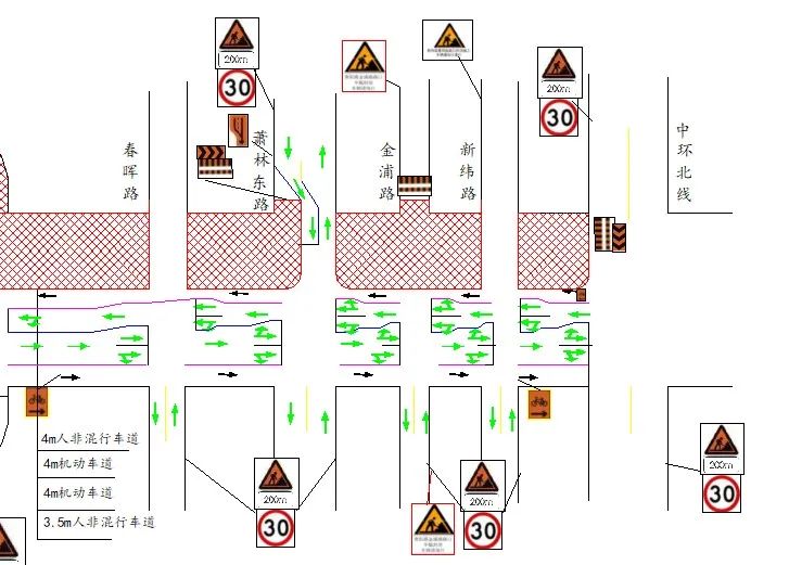行人及非机动车辆请沿上述路线绕行。