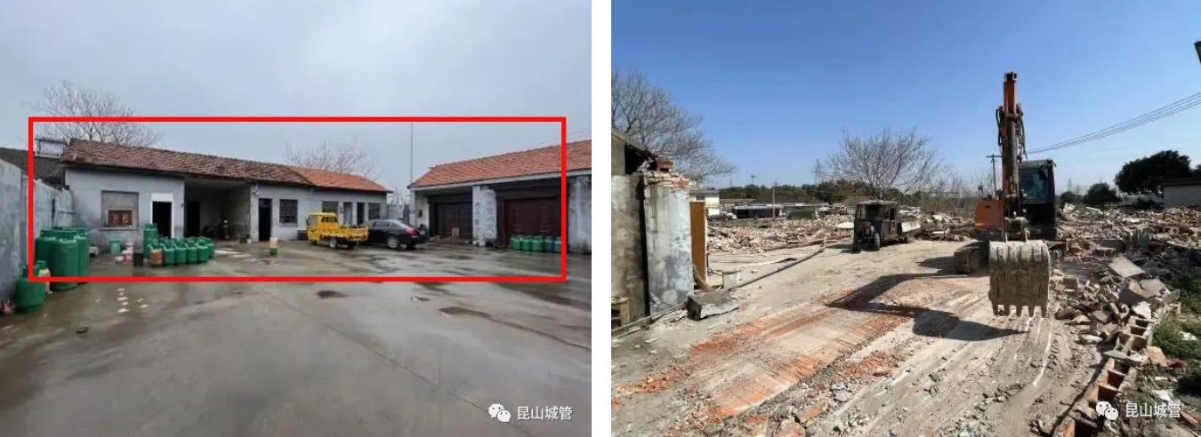 考虑到该处违法建设主要用于液化气瓶存储,安全风险性较高,市治违专班督查组、张浦镇综合行政执法局多次前往该违建区域对拆违工作进行现场指导、监督,推进拆违进程。在拆违过程中,出于安全要求,在完成对该区域断水断电、现场清场后,才由符合资质的拆违第三方进场一一拆除该区域违法建设,并出于环保要求,在拆违过程中由拆违人员利用洒水枪强降尘,同时对拆后建筑垃圾同步清理,目前该违建已成功清除。