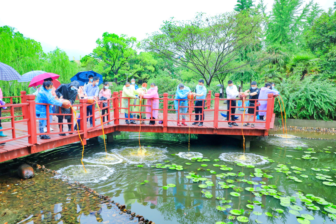 在昆山花园,鹿城环保社的志愿者和物业工作人员通过投放酵素净化小区内河道的形式,面对面向居民宣传环境日的由来、意义以及今年世界环境日的主题。