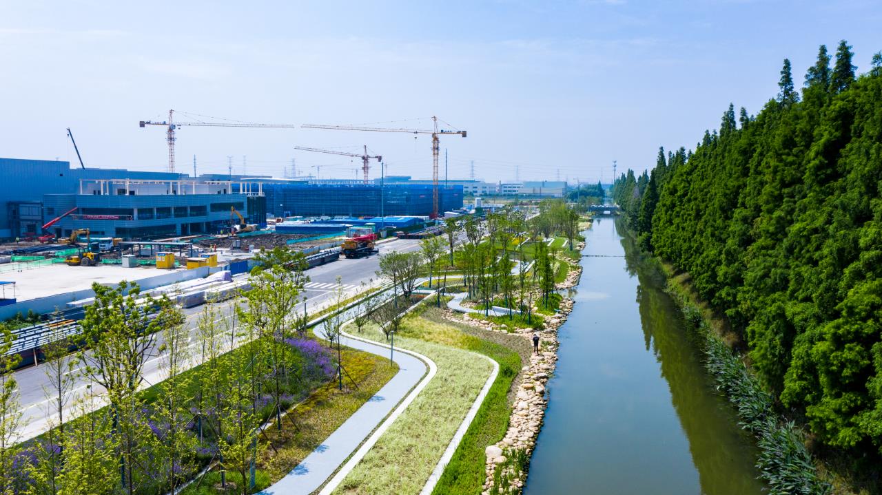 昆山开发区绿化管理所规划设计科负责人表示:“景观设计中原有的中心河和道路之间存在1米5的落差,我们在景观设计中融入了高低台地式的景观设计风格,将道路产生的雨水经过台地融入到下凹式绿地,再经过多层过滤融入到中心河中。”