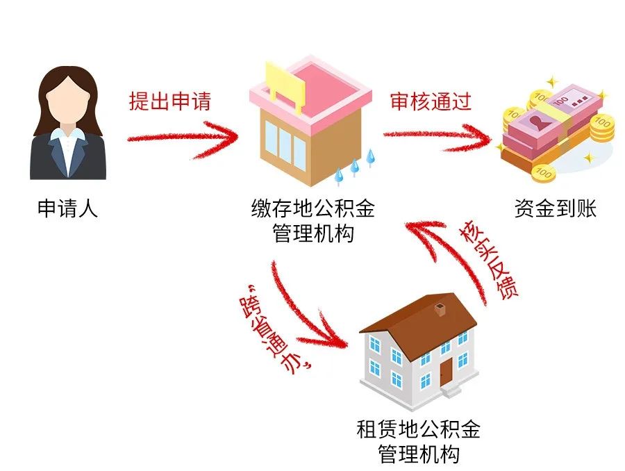 办理流程上,申请人向缴存地公积金管理机构提出申请,缴存地公积金管理机构受理后,依托住房公积金“跨省通办”工作机制向租赁地公积金管理机构核实申请人家庭(含单身家庭)房屋状况、房屋租赁登记备案情况等信息。租赁地公积金管理机构核实情况后将信息反馈给缴存地公积金管理机构,审核通过的,提取资金按规定转账到申请人本人账户。