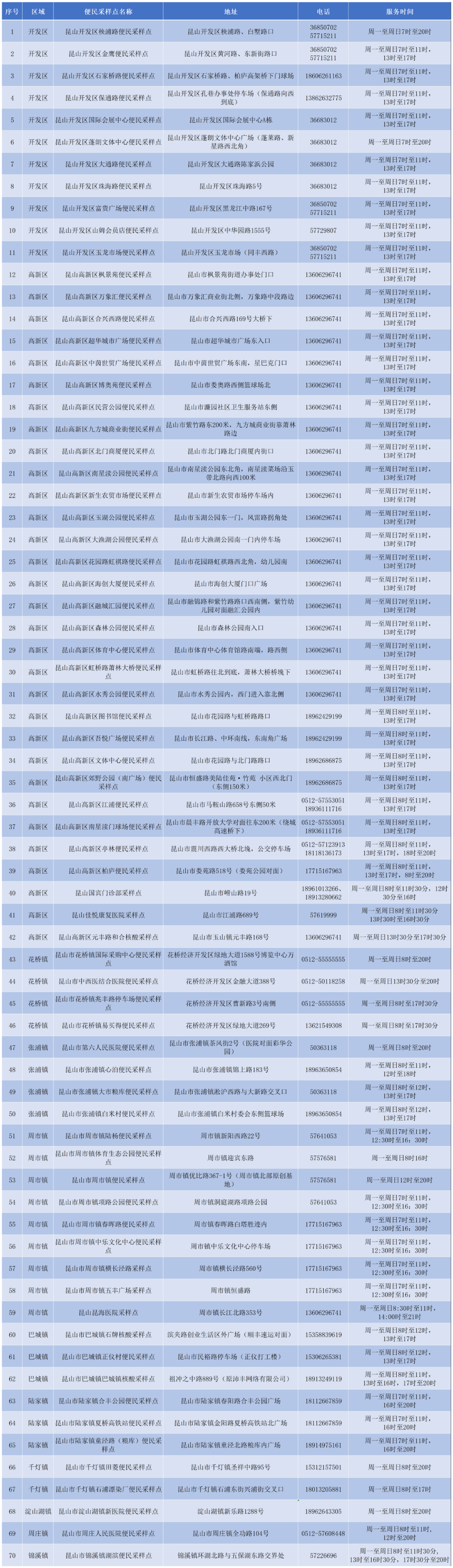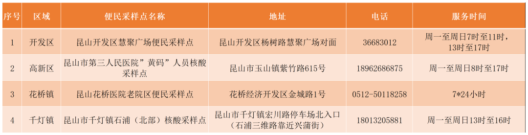 昆山市核酸采样点信息一览表