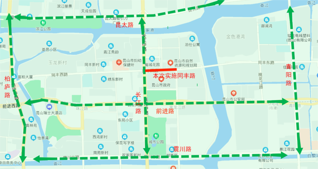 ● 外围机动车辆,可由柏庐路、长江路、震川路、昆太路、青阳路等周边道路绕行。