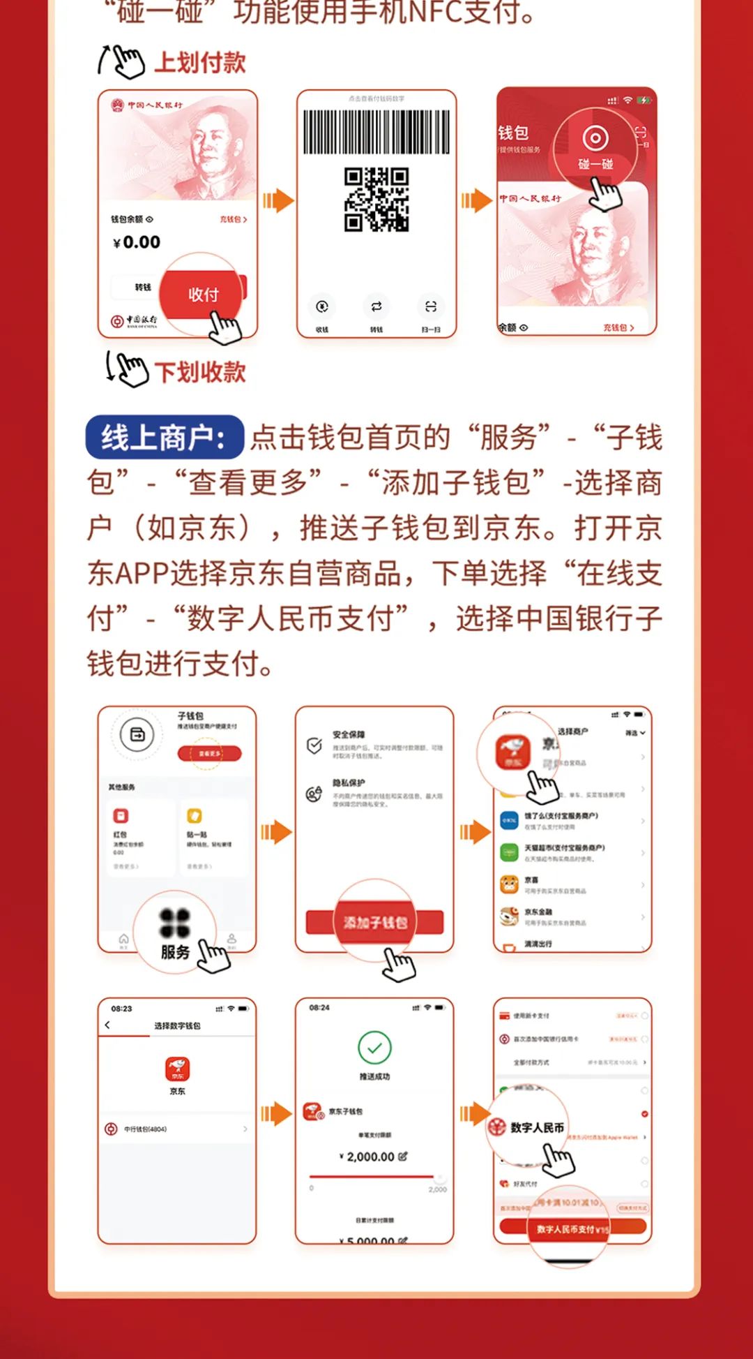 活动期间,苏州农行数字人民币钱包客户在指定活动商户通过数字人民币APP或农行掌银APP进行数字人民币支付,消费者在汽车销售企业真实购车后由车商提供相关信息,农行审核无误后即可发放数字人民币红包。