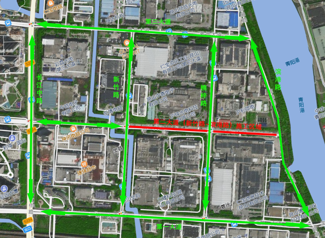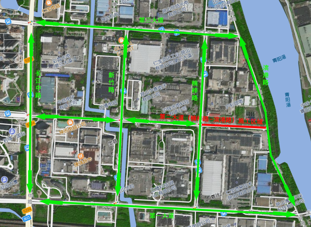 施工期间,第二大道(楠梓路-滨港路)全封闭施工。