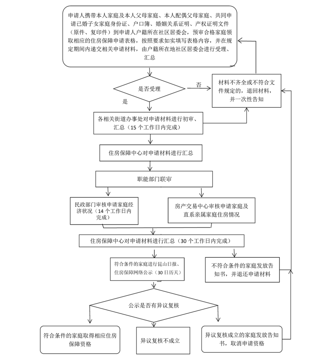 凡符合《昆山市保障性住房管理办法》规定条件的均可到户籍所在社区住房保障窗口,登记领取相关申请资料。在通知规定的期限内向所在社区,递交申请书和申报资料(申报材料纸张统一为A4纸),逾期不予受理。