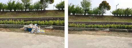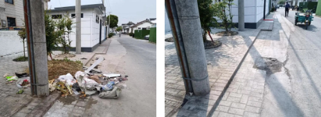 目前,共计整治房屋四周乱堆放35多处,清理河道及偷倒垃圾近3吨,清理黑色广告8处。整理规范农房翻建材料堆放2处,平整公共空间200平方米,清理更换破损垃圾桶6处。