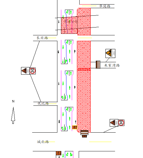 北向南左转上朱家湾路机动车辆可提前从长兴路—黄浦江路—朱家湾路绕行。