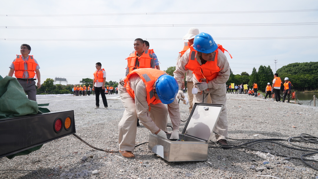 “因持续降雨和局部暴雨,发现我村湖泾河水位高涨至3.9m,湖泾河沪宜高速北侧段出现漫堤险情......”接到小泾村报告后,周市镇防汛抗旱指挥部立即启动应急预案,并充分发挥集成指挥中心线上总调度作用,实现镇、部门、村三级协调联动。在演练现场,各分队职责明确、配合默契、行动迅速,蔚州房产突击队负责堤防抢险、水务公司突击队负责积水抢排、小泾村突击队负责支援、应急供电突击队负责发电机组拖运和接电,抢险工作高效有序开展。同时,还组织了相关村、社区进行观摩。演练结束后,指挥部还针对现场演练情况进行分析评估,及时解决演练中存在的问题,进一步完善防汛应急预案,提升全镇应对突发险情的应急处置能力。