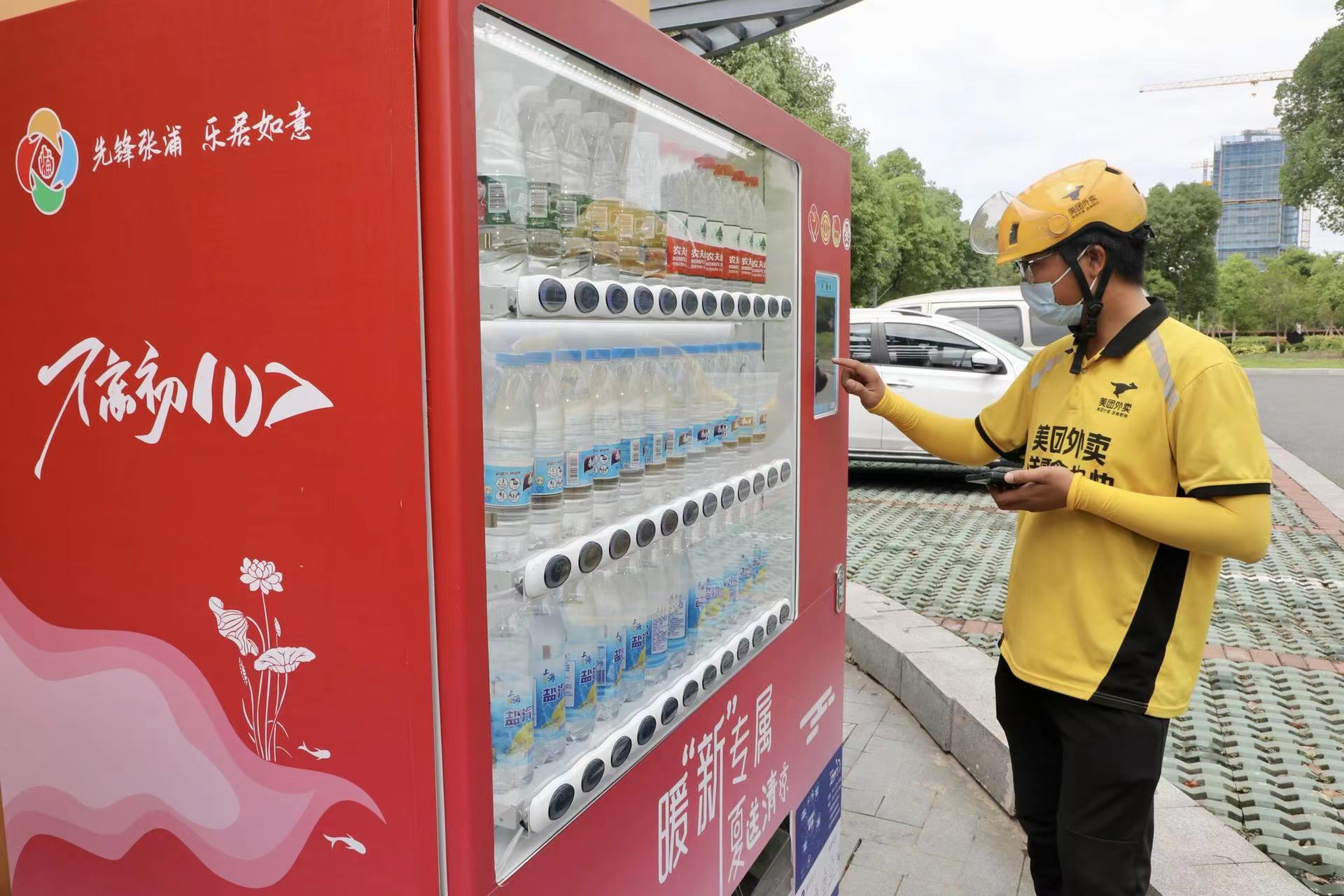 在张浦镇文明益站,记者看到,一台智能售货机全新亮相,柜内摆放了冰矿泉水、冰盐汽水等饮品,供环卫工人、外卖骑手等取用。张浦镇环卫工人金月芳表示:“很感谢政府的关心,给予了我更大的干劲。”外卖骑手李卫国说:“冰水给炎热的夏天送来了清凉,还能减少中暑的风险,让我感到很幸福!”