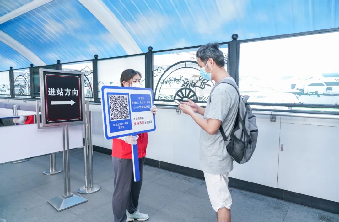 小昆在花桥站1号口看到,各入口都已张贴了“苏州场所码”,3名工作人员正引导乘客扫描车站场所码进行入站登记,乘客经核验健康码绿码、72小时内核酸阴性证明或24小时核酸采样证明后,体温无异常可进站乘车。