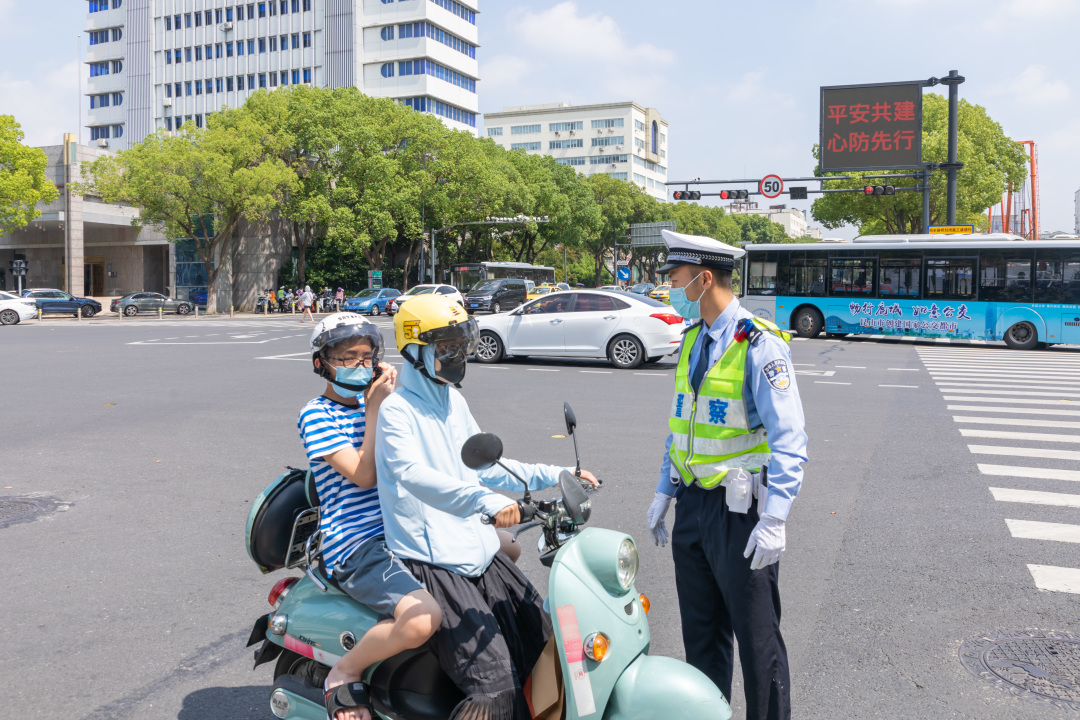 暑期,中老年人骑电动自行车接送中小学生往返培训机构的现象比较普遍,不佩戴安全头盔、一车多人、在机动车道内行驶等交通违法事件多发。