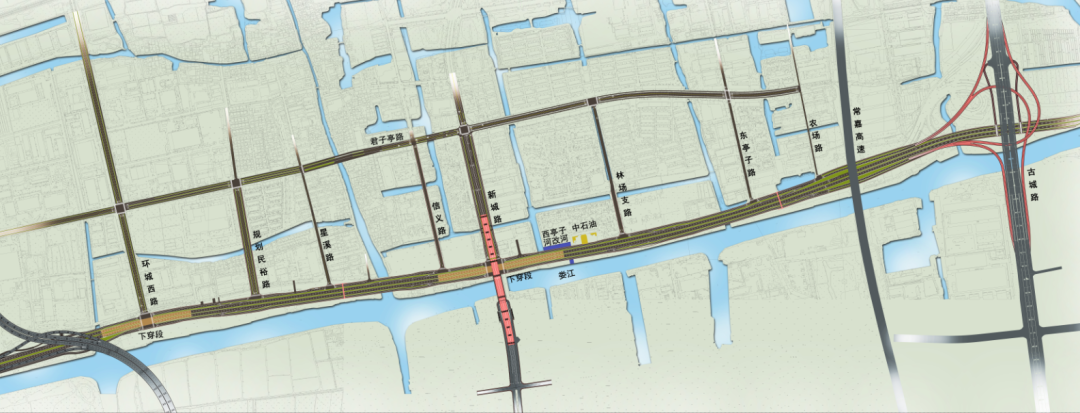 本项目西起昆山界,东至古城路,全长约3.7公里,主线双向六车道布置,按照快速路标准设计,取消现状红绿灯,在环城西路节点、新城路节点设置下穿隧道。同步改造新城路跨娄江大桥,缓解区域交通拥堵,便捷市民通行。