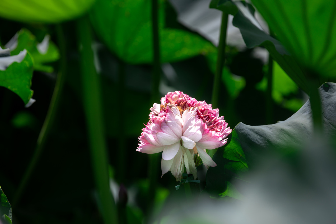 盛夏时节,昆山三宝之一的并蒂莲迎来绽放季。在亭林园东区并蒂莲池内,并蒂莲已竞相开放,还有不少含苞待放,在满池碧绿荷叶的衬托下摇曳生姿。