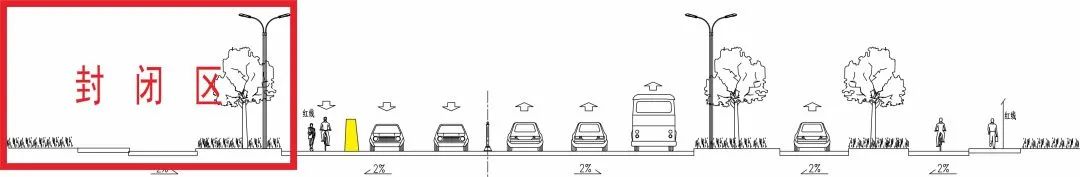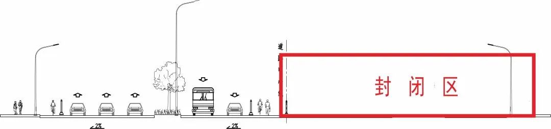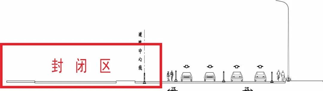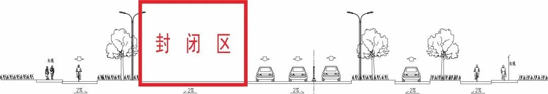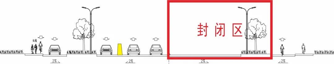 封闭南半幅机动车道,非机动车道及人行道正常通行。