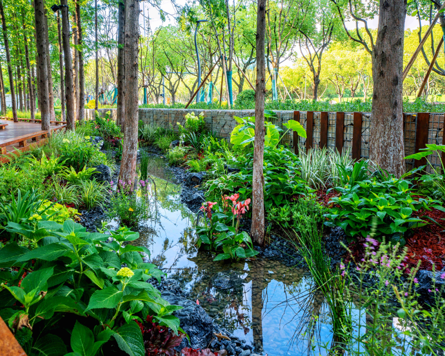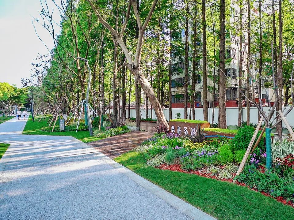 "杉影秘境"位于长江路(前进路-震川路)西侧,作为长江路景观改造的样板段,目前已完工并向市民开放。该处也是长江路的一个线形公园,与东侧城市公园呼应,以生境廊道景观搭配多样化的植物配置形成自然而丰富的趣味场所,打造自然生态的林下栈道空间和自然课堂网红节点,是现代景观和生态效应的融合实践,也是低成本、低维护造园手法的探索和研究,还是“昆小薇”在线形活动空间的生动诠释,营造了现代都市人向往的一片自然生态空间。