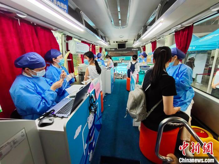 ▲资料图:南宁师范大学师园学院学生在广西新冠病毒疫苗移动接种车上接种疫苗。 黄艳梅 摄