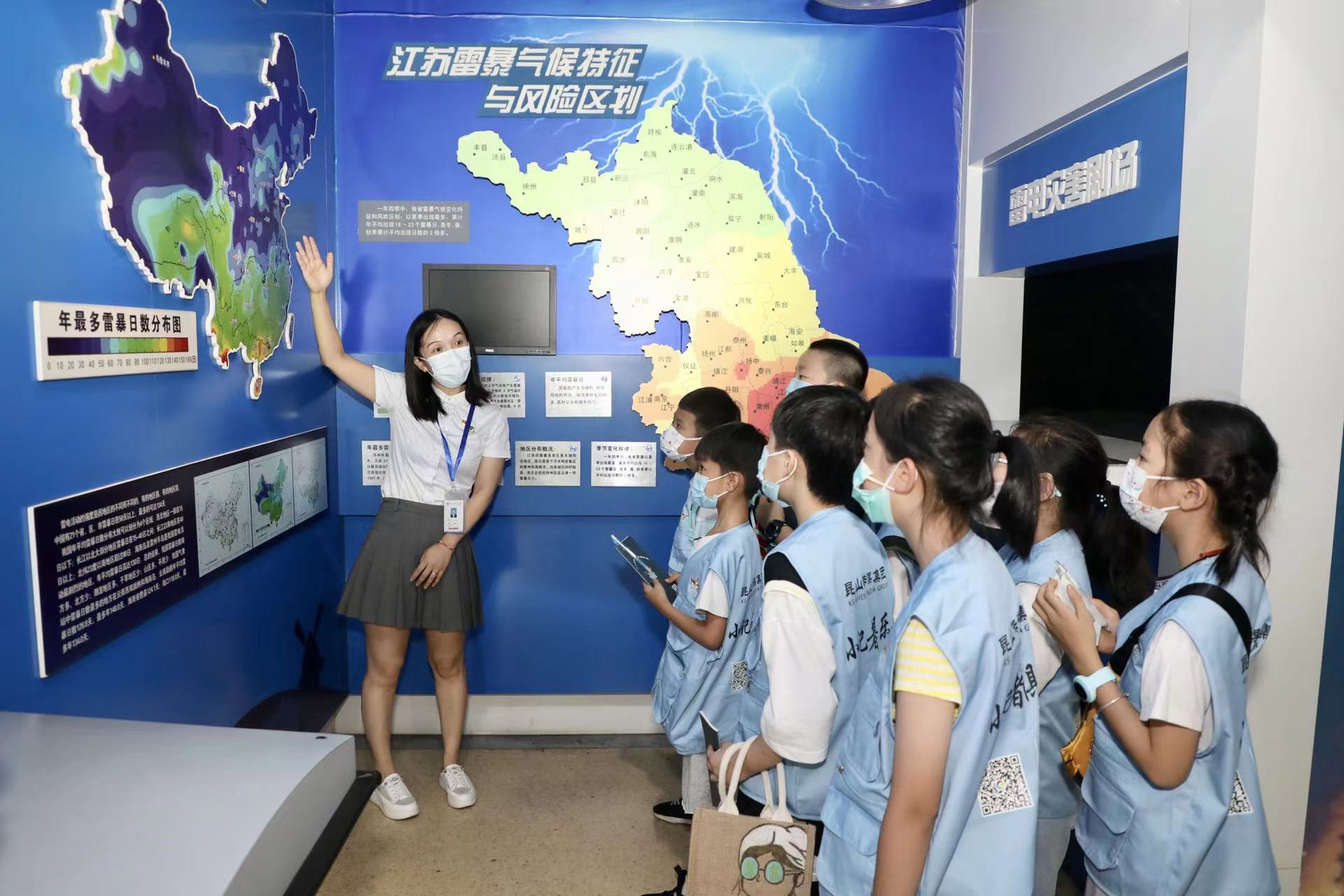 在预报预警中心,科普人员向大家介绍昆山气候基本情况、讲解了天气预报制作流程,以及近期夏季高温天气和强对流天气的注意事项,并观看了气候知识科普宣传片,引起了学生们的极大兴趣。
