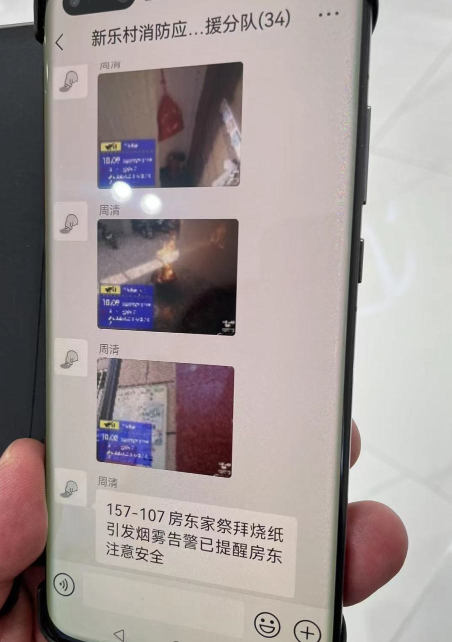 “157—107号房间,房东家祭拜烧纸引发烟雾报警,已提醒房东注意安全。”7月26日上午十点多,看到手机里村消防应急救援工作的微信群里弹出这条信息,高新区新乐村党总支书记、村委会主任朱彩华随即拨通电话,要求发信息的巡查队员周清继续密切关注。