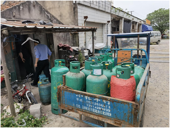 入夏以来,巴城镇红杨河村网格员严格按照上级部门部署,深入开展“331”领域夏季消防安全“百日攻坚”行动。日前,该村网格员在日常排查期间发现,位于虹祺路望山大桥北侧一处民房疑似非法存储液化石油气,并将排查情况上报巴城镇“331”机制办。此后,巴城镇“331”机制办第一时间汇同镇派出所、安监办、建设局、红杨河村等部门,启动联合执法机制。经查,该场所存在无相关安全设施、无燃气经营许可证、非法倒气等违法违规行为,且部分液化气钢瓶未进行安全检测或已达到报废年限。一旦发生泄漏,易引起爆燃事故,严重威胁周边的居住人员生命安全。执法人员立即查扣所有气瓶,并固定现场证据。“目前,唐某某因非法储存危险物质被公安机关处以行政拘留,违规提供气瓶的送气站已交由住建部门作进一步处置。”巴城镇“331”机制办相关负责人说。