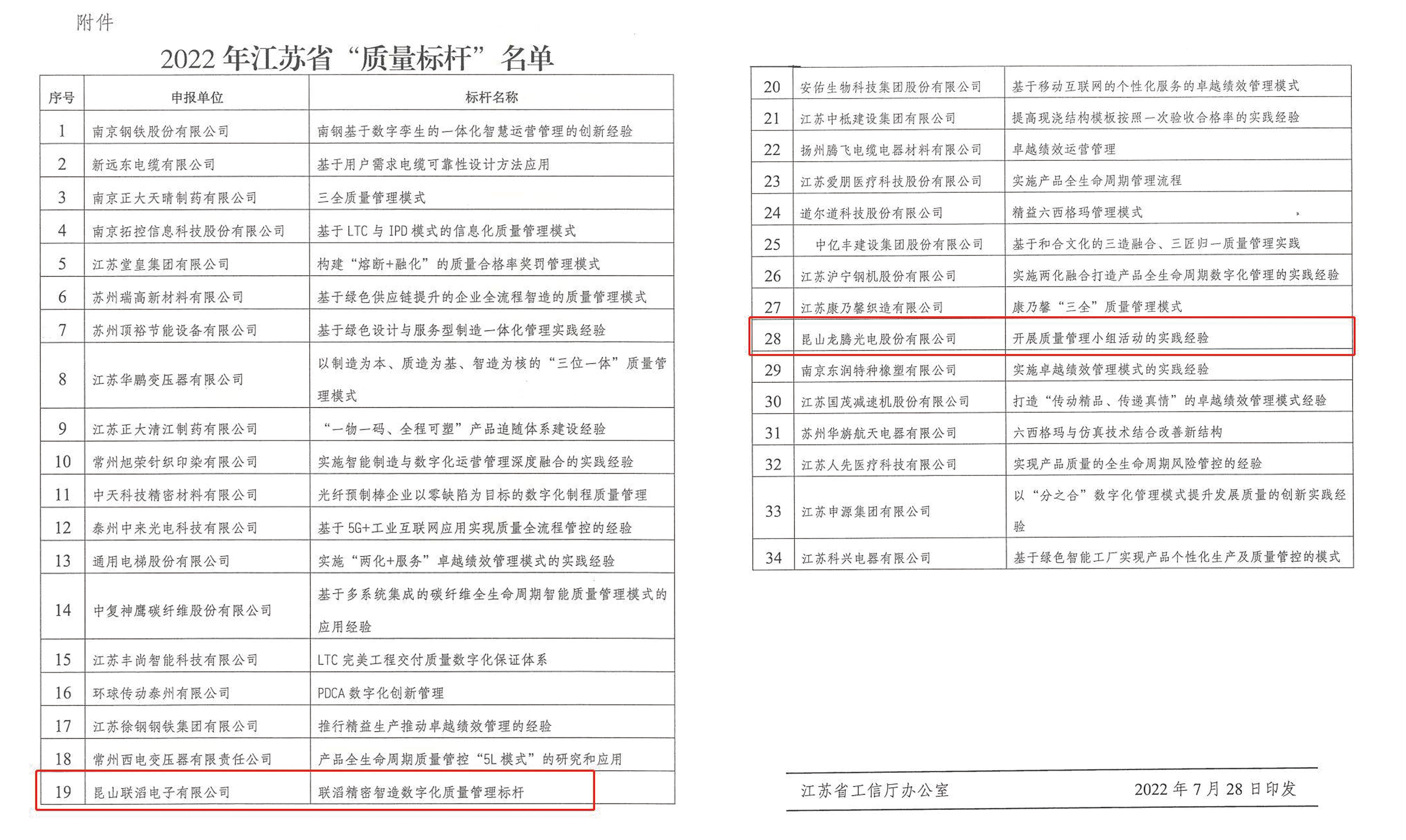 昆山两家企业入选!2022年省“质量标杆”名单公布