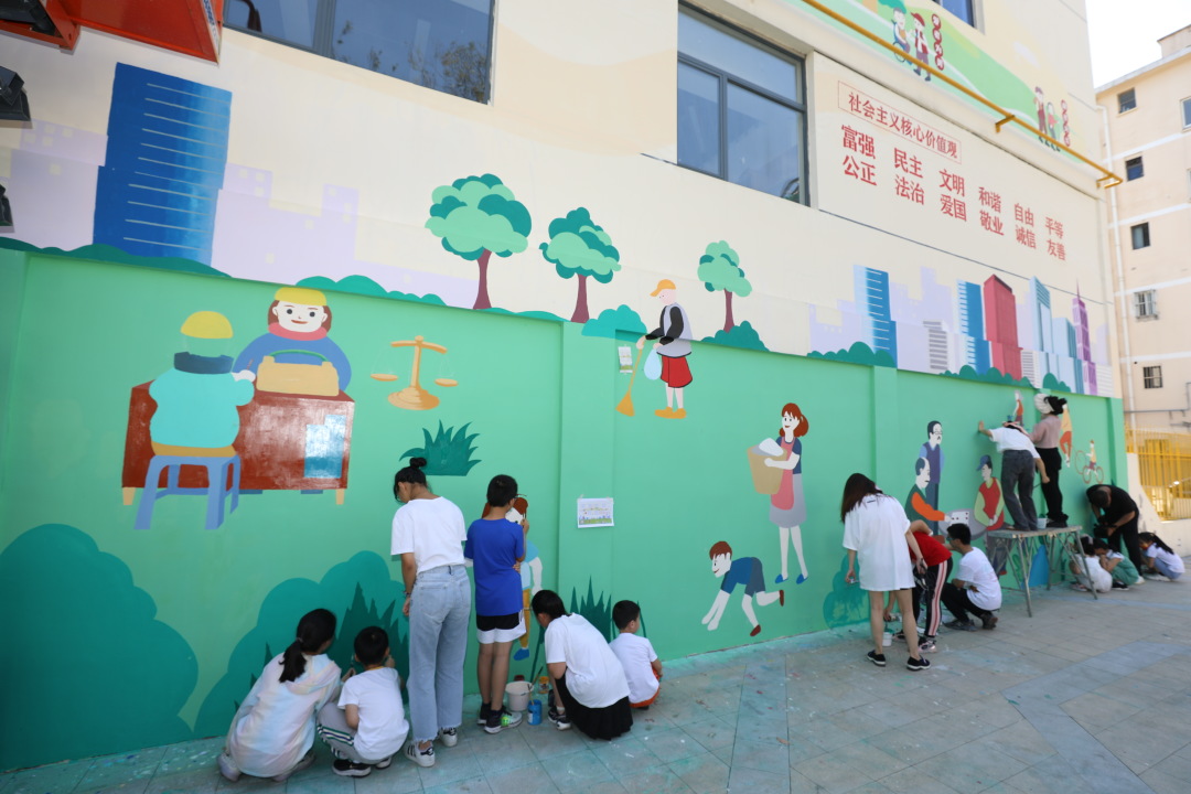 彩绘墙以“新时代文明实践”为主题,由专业团队带着居民共同完成的,结合小区最新微治理特色,成为图文并茂、“会说话”的文明宣传载体,引导大家共建文明社区。