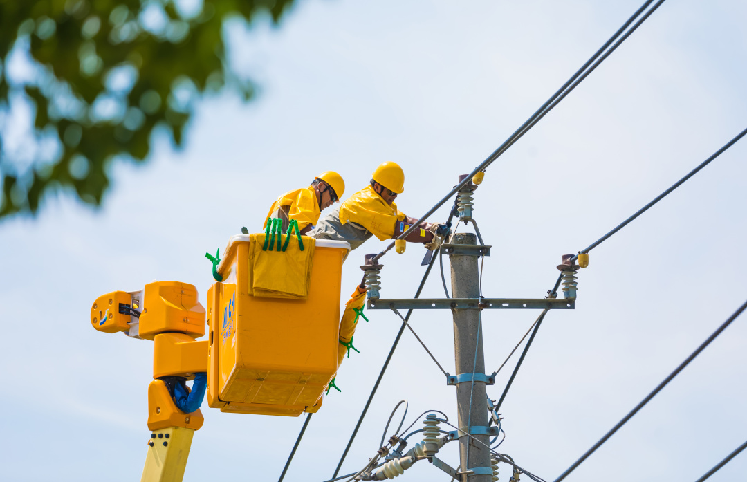 ▲国网昆山市供电公司员工陆玉良、王雪明在千灯镇开展带电作业