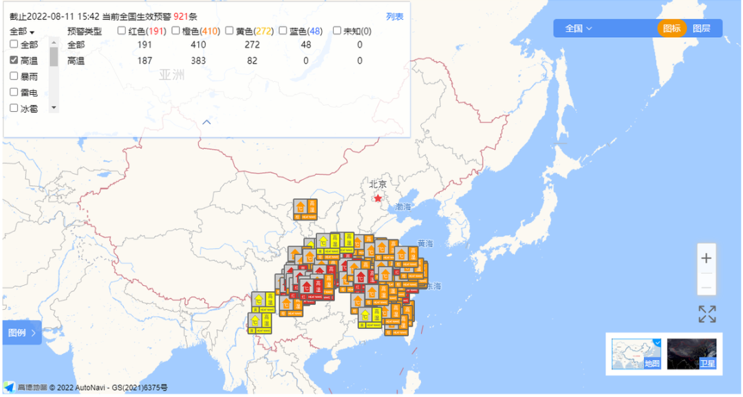 立秋北方凉风渐至,但南方部分地区发布红色高温预警,气温达40℃以上。8月11日超191个地区发布高温红色预警。