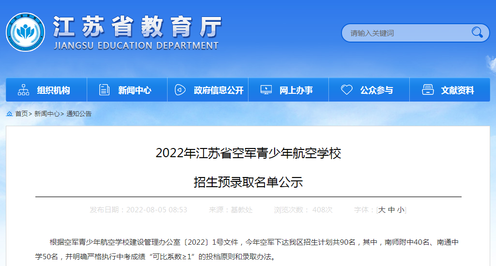 江苏省空军青少年航空学校招生简章一般于3月份发布,4月份前往各设市区初选站进行初选。