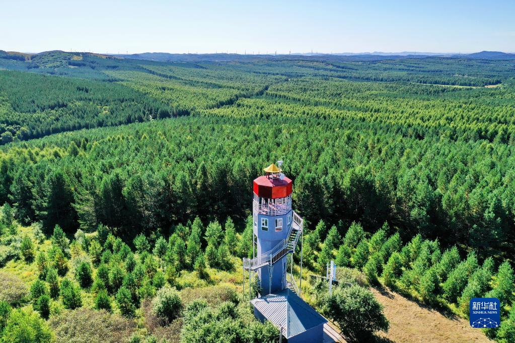 这是2021年8月23日拍摄的塞罕坝机械林场月亮山望海楼。新华社记者 牟宇 摄