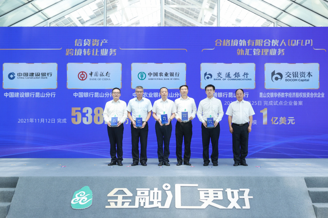 昆山金改区是全国唯一以“两岸”为主题的金融改革试验区,将为全国金融业对外开放、构建双循环新发展格局破题探路、积累经验。2021年6月,国家外汇管理局批复同意在苏州工业园区、昆山金改区开展信贷资产跨境转让、外债便利化额度、非金融企业外债登记管理改革等五项资本项目外汇业务创新试点。同年10月,国家外汇管理局江苏省分局发布了五项外汇创新业务试点实施细则。