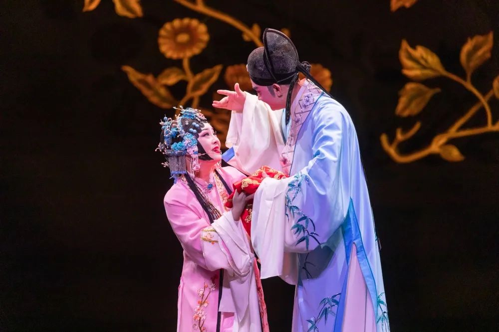 《罗帕记》是黄梅戏经典剧目之一,与《天仙配》《女驸马》并称“黄梅戏三绝”。《罗帕记》作为黄梅戏剧目中为数不多、唱做并重的“骨子戏”,人物个性鲜明、各美其美,剧情跌宕起伏、扣人心弦,舞台呈现引人入胜、发人深省。演出现场,演员们精神抖擞、全情投入,一个眼神传递柔情蜜意,一句唱腔道尽万般无奈,将不同的角色表现得淋漓尽致。