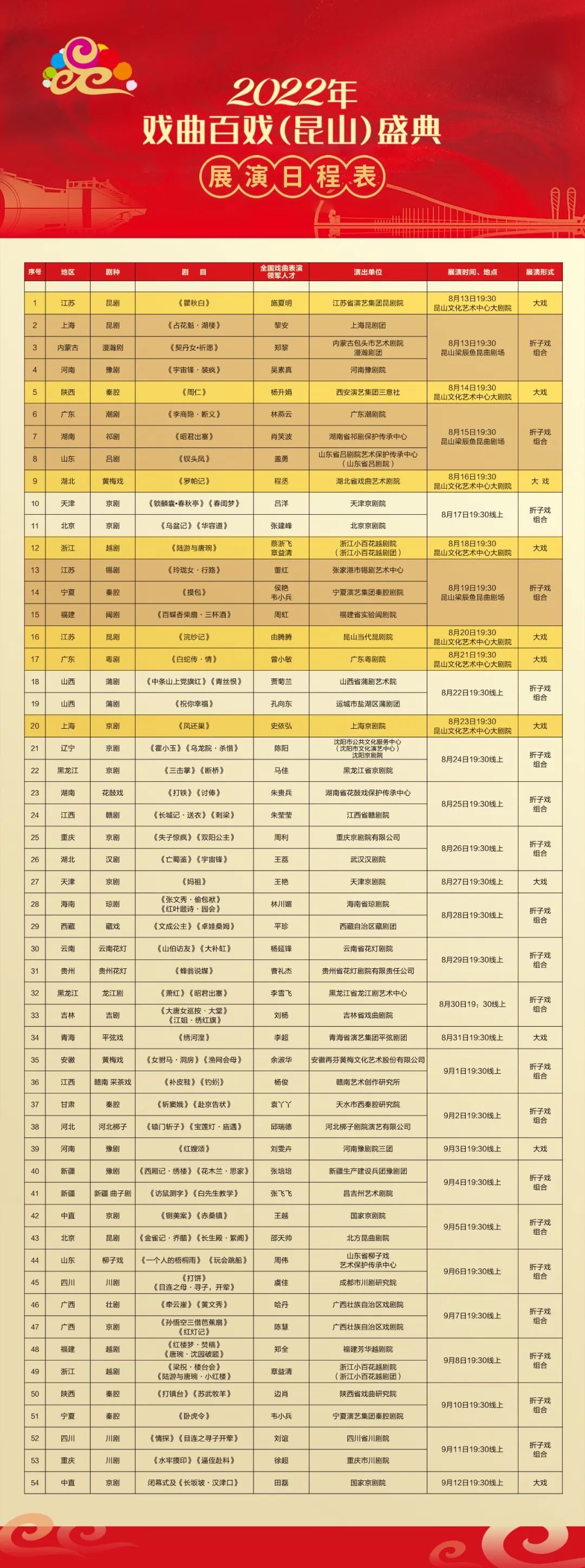 根据戏曲百戏(昆山)盛典展演日程表