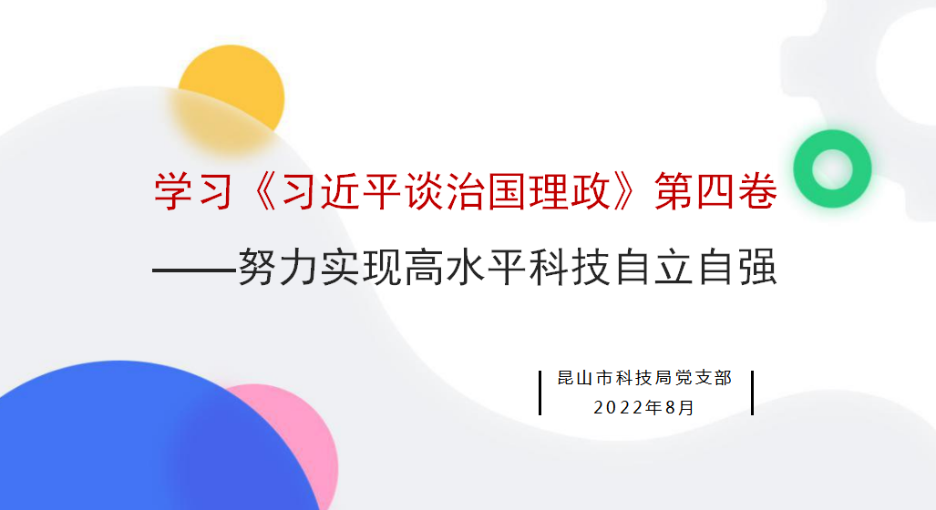 在全党全社会喜迎党的二十大胜利召开之际,《习近平谈治国理政》第四卷出版发行。市科技局党支部组织党员认真学习领悟贯彻《习近平谈治国理政》第四卷,以党的理论创新最新成果武装头脑、指导实践、推动工作,自觉在思想上政治上行动上同以习近平同志为核心的党中央保持高度一致,努力为服务经济发展大局做出更大的科技贡献。