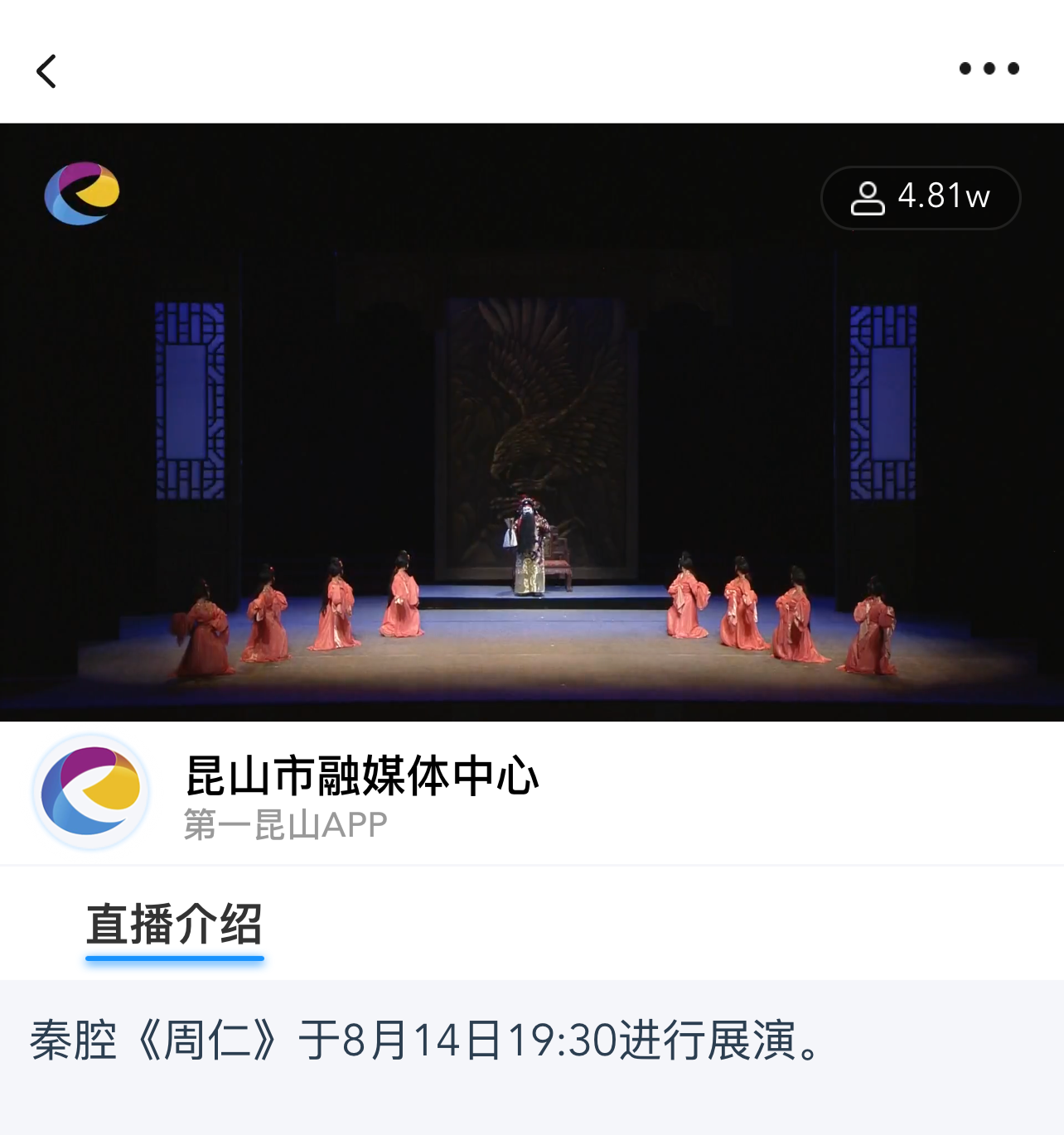 线下演出结束了,我就改通过第一昆山APP线上追戏,听说每场演出都有全国戏曲表演领军人才,看得真过瘾,感觉打开了新世界的大门。