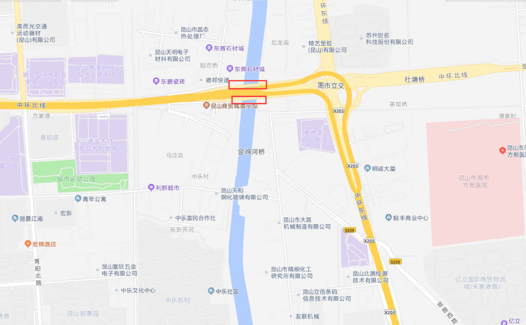 ▲中环北线金鸡河辅道桥养护位置图