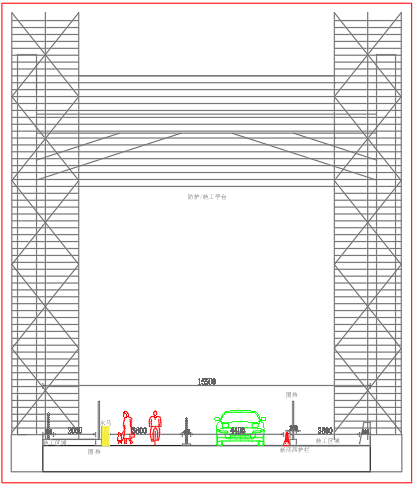 ▲金鸡河辅道桥交通组织车道断面图(半幅)