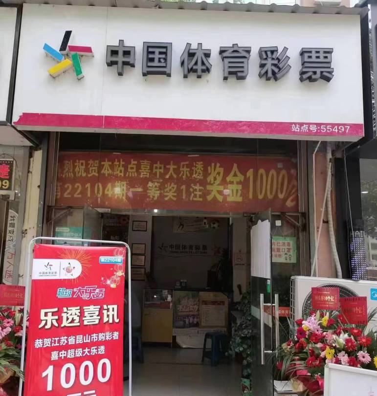 据悉,这是3205055497站点自2010年开办以来的首注大奖,在得知自己站点中出了大奖后,业主夏女士连夜准备,昆山体彩中心也及时为站点送去了中奖横幅。