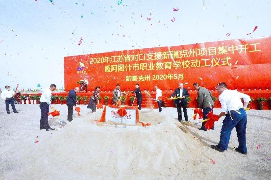 为阿图什市现代产业培养技术人才迫在眉睫。在昆山援疆工作多方协调推动下,2020年5月14日,阿图什市中等职业技术学校破土动工,学校由专业设计团队总体设计,投入援疆资金近8000万元,总占地面积116亩,总建筑面积3.75万平方米,是阿图什市第一所全日制中等职业技术学校,也是2020年以来第四批昆山援疆工作组配合阿图什市建设的单体规模最大的教育基础设施,填补了阿图什市中等职业教育空白。