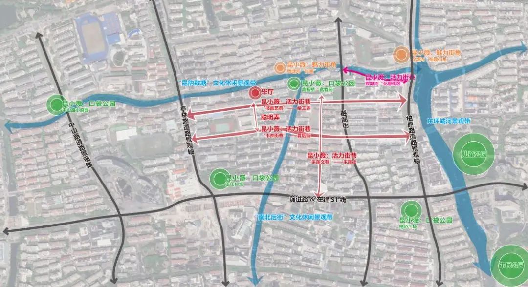 柴王弄、县后街、采莲街活力街巷项目均位于昆山老城核心区,周边丰富的文化典故、历史遗迹、名人轶事等,是昆山老城区文化提升与城市更新相融合的重要载体。通过这三条活力街巷的建设,将完善老城区街巷文脉休闲网络。
