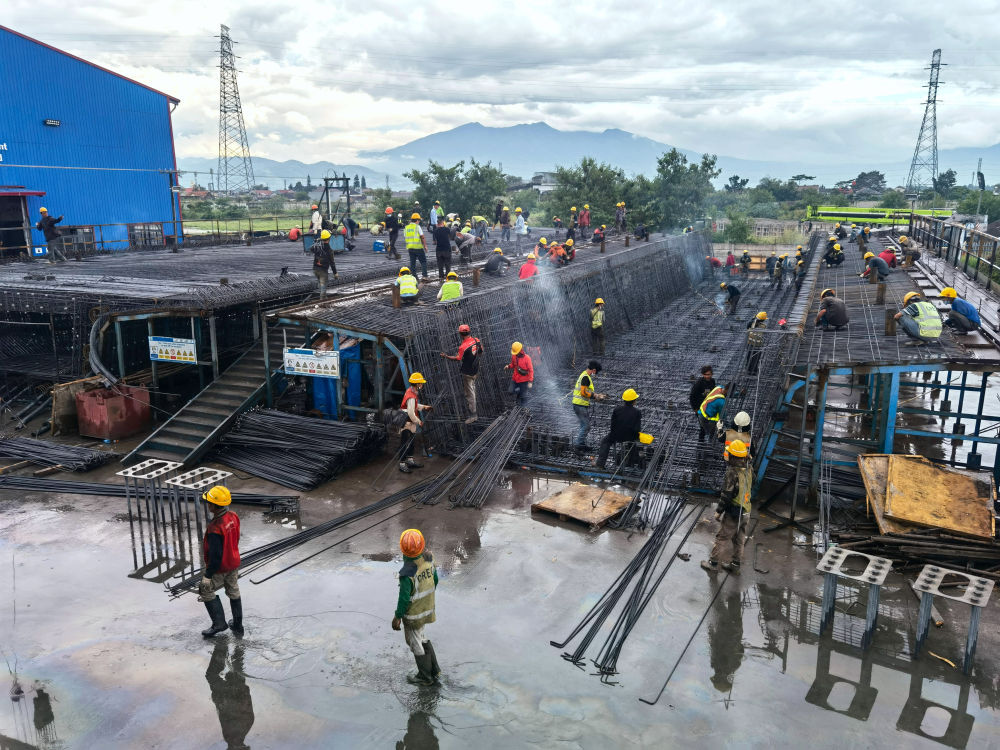 ▲工人在印度尼西亚雅万高铁4号梁场作业(2022年5月1日摄)。新华社发(王增堃摄)