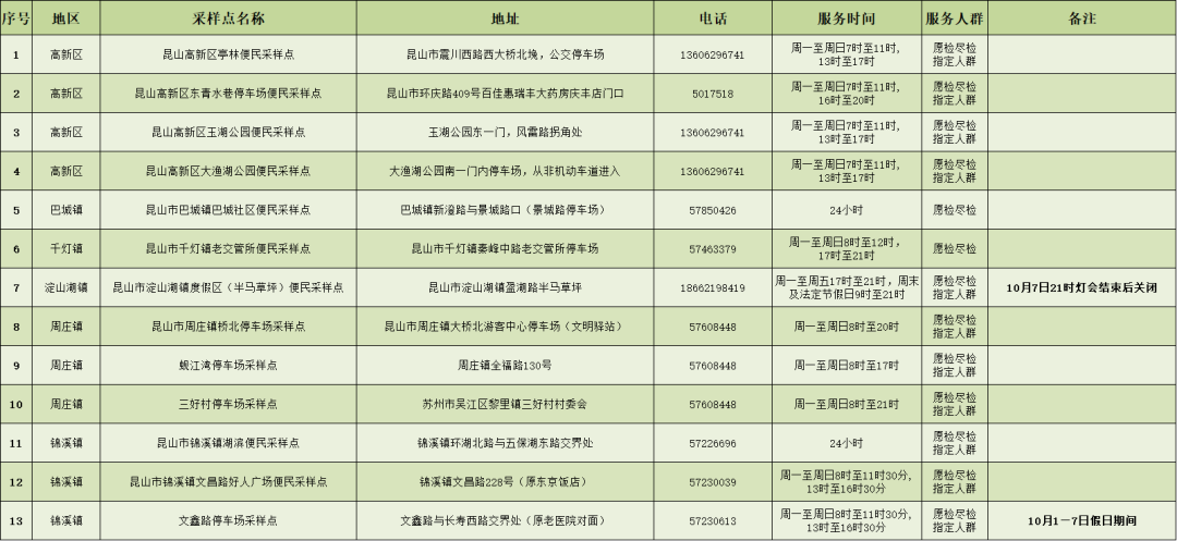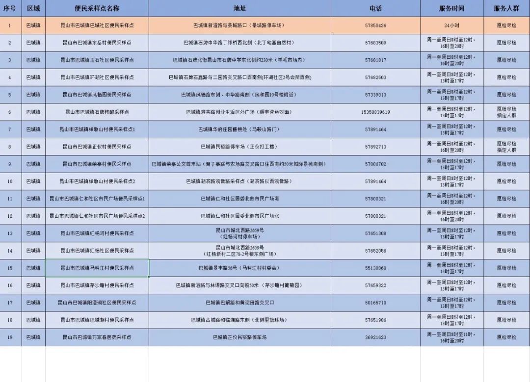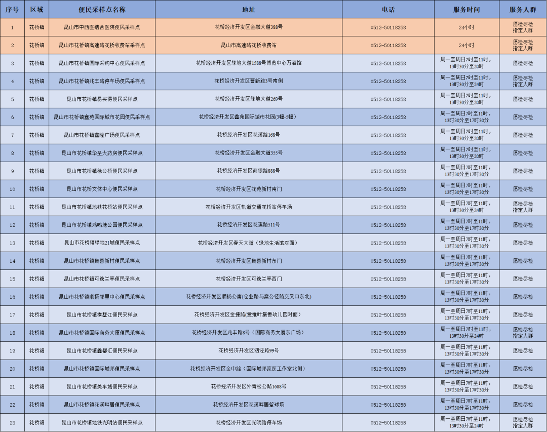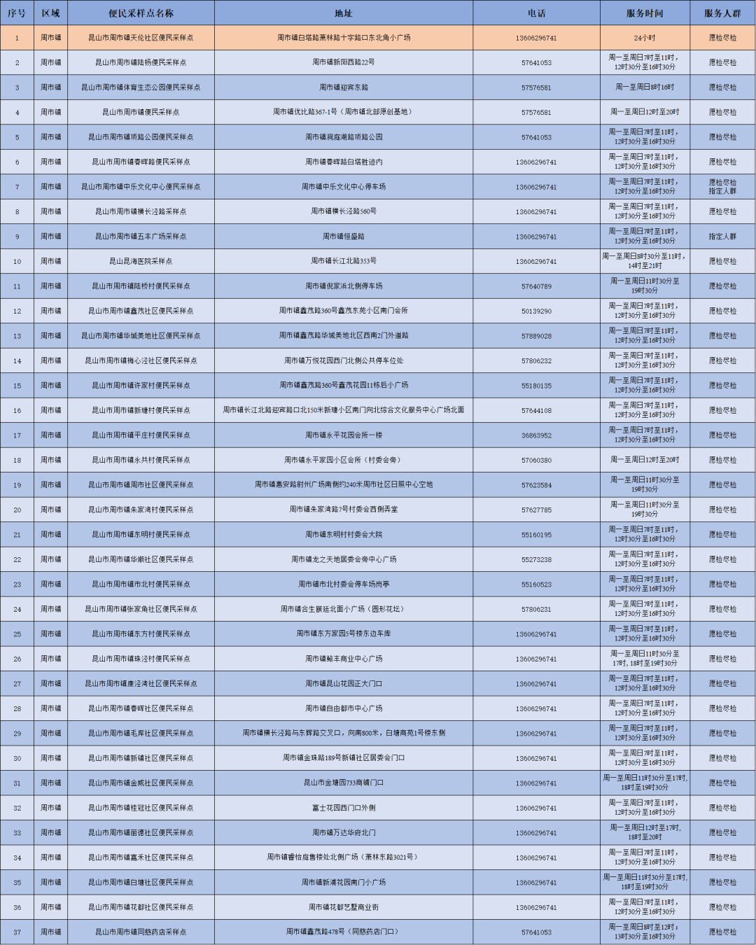 ▲24小时核酸采样点共15个,其中开发区3个,高新区2个,花桥经济开发区2个,张浦镇、周市镇、陆家镇、巴城镇、千灯镇、淀山湖镇、周庄镇及锦溪镇各1个。