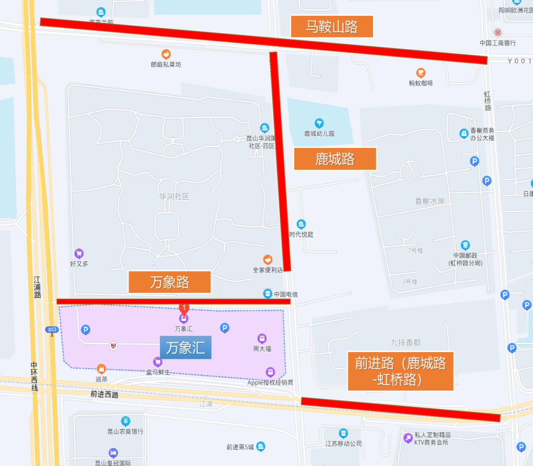 昆山中环北线东向西,中环西线南向北,中环南线郁金香路施工路段易出现往返高峰时段车流量较大情况。中环高架的其余路段预计通行情况良好。