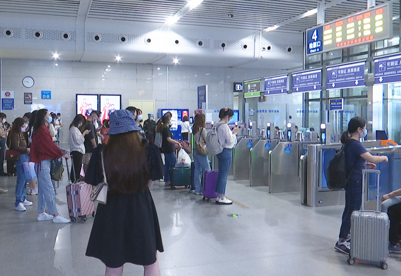 记者在高铁昆山南站看到,车站严格落实“四查一测一扫码”的防疫政策,购票、安检、进站等各个环节秩序井然。站方介绍,国庆期间高铁昆山南站共发行257班次列车,受疫情影响,预计出行人数同比下降2成左右,但部分热门出行路线客流仍然较大,为保障旅客出行,增开了10班前往苏北、安徽等地的临时客车。