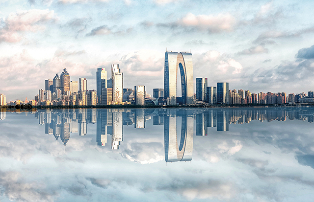 ▲苏州金鸡湖畔的建筑群。图/视觉中国