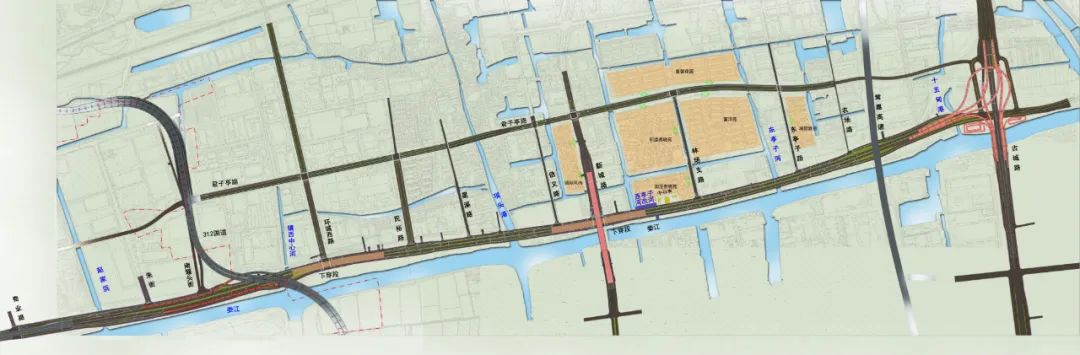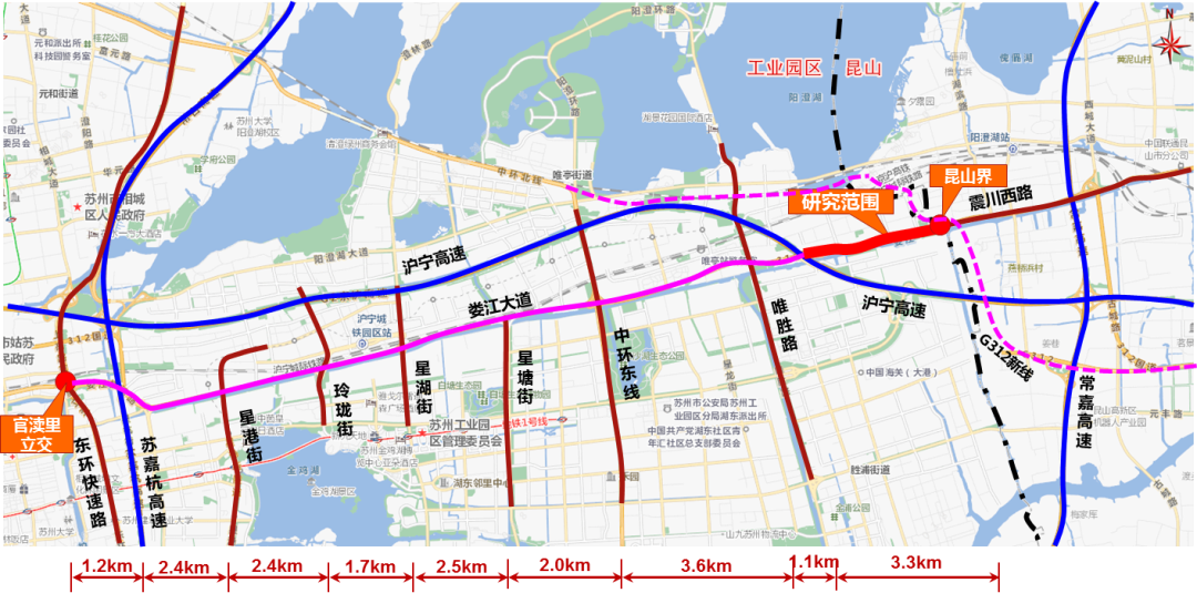 ▲震川西路对接娄江快速路项目路线图(昆山段)