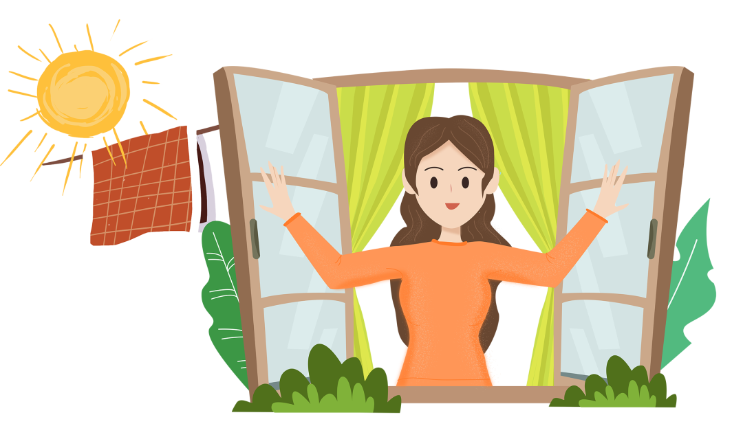 室内环境密闭,容易造成病菌滋生繁殖,增加人体感染疾病的风险。定时开窗通风可有效改善室内空气质量,减少室内致病微生物和其他污染物的含量,降低室内二氧化碳和有害气体的浓度。此外,阳光中的紫外线还有杀菌作用。