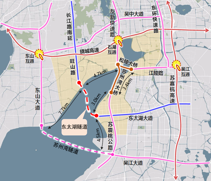 东太湖隧道和苏州湾隧道,加大吴中吴江与中心城区联系,目前正在有序推进中。双隧并进,世界级湖区指日可待!