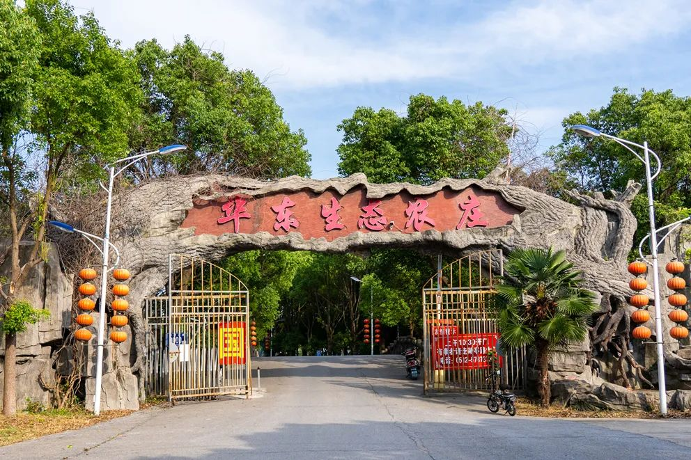 华东生态农庄总占地面积400多亩,拥有一万平方米的生态餐厅,餐厅将古典园林与现代造园艺术相结合,别有特色。三个大型宴会厅各具风格,可容纳约3000人同时就餐。菜肴坚持华东纯绿色品牌,以农家土法烧制。玩在农庄、嬉戏林间、漫步果园,另有一番情趣。